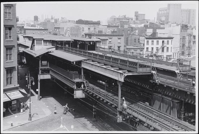 [Cast iron column supporting the stairway at the 9th Street El station.]