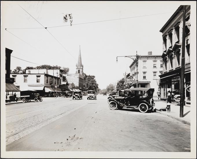 [Looking east on Northern Boulevard from Main Street.]
