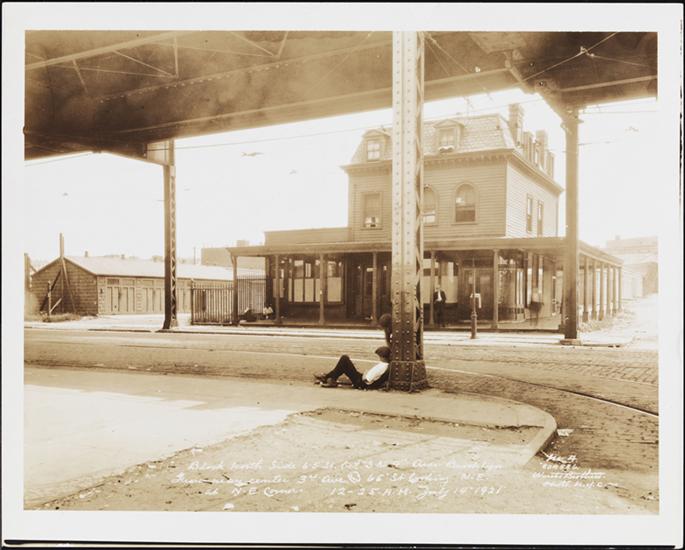 Railroad depot at 3rd Avenue and 65th Street from the 3rd Avenue El Train.]