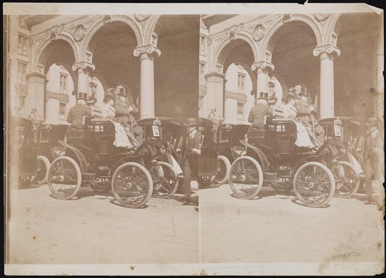 [Procession of Cars on Broadway Advertising the Use of Kerosene for Fuel.]