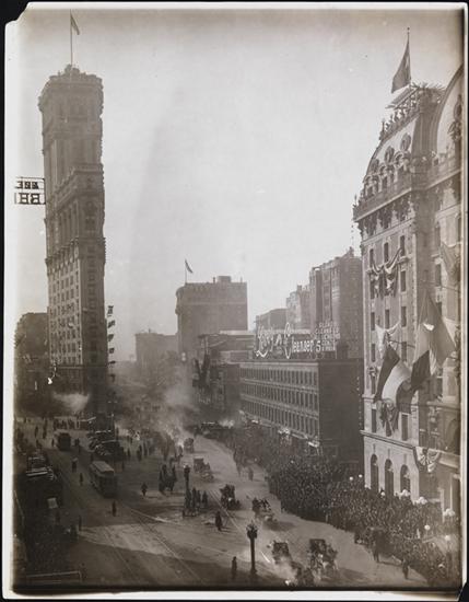 Auto Race New York-Paris, Times Sq. Feb 12, 1908, Hotel Astor.