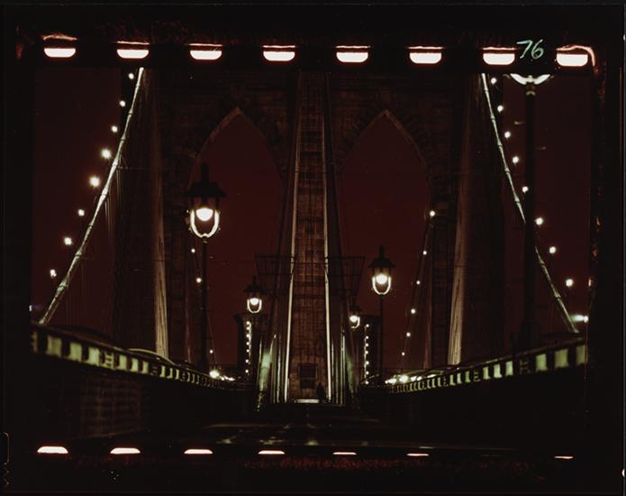 Skyline of Lower Manhattan at Night from Under Brooklyn Bridge, New York