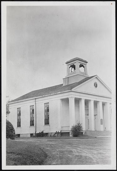 [Rear view of Moravian Church.]