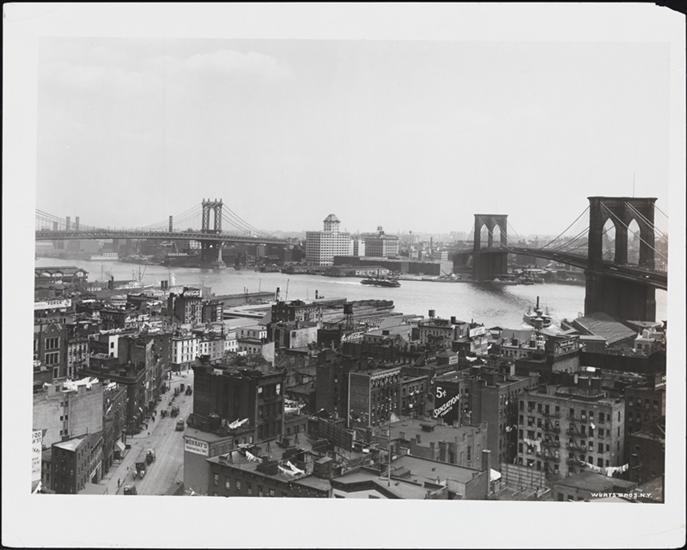 [Lower Manhattan with the Brooklyn and Manhattan Bridges.]
