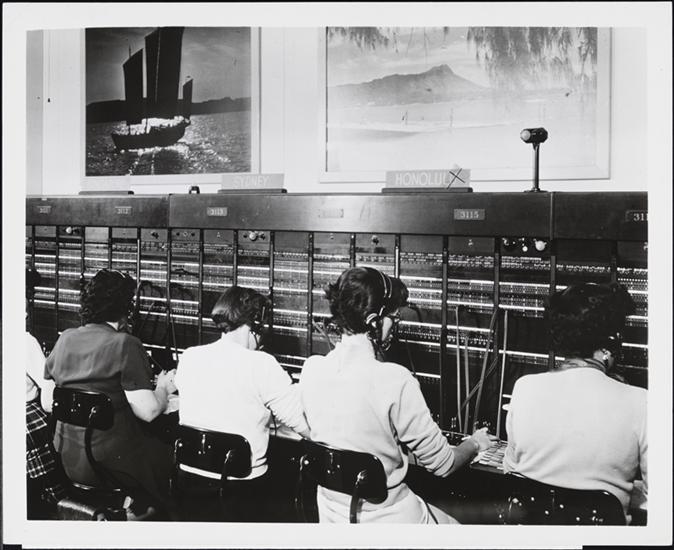 [Switchboard at the long distance headquarters of the American Telephone and Telegraph Company.]