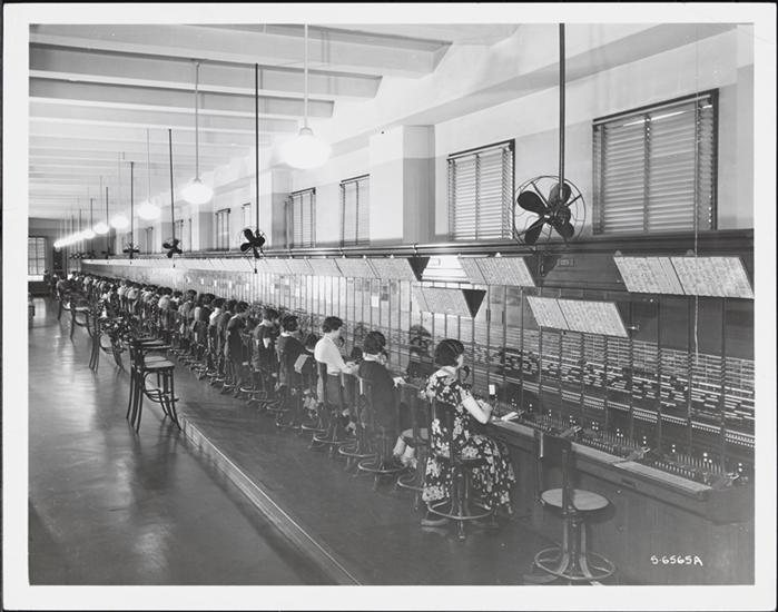 [People observing telephone operators.]