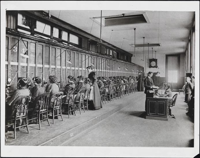 [People observing telephone operators.]