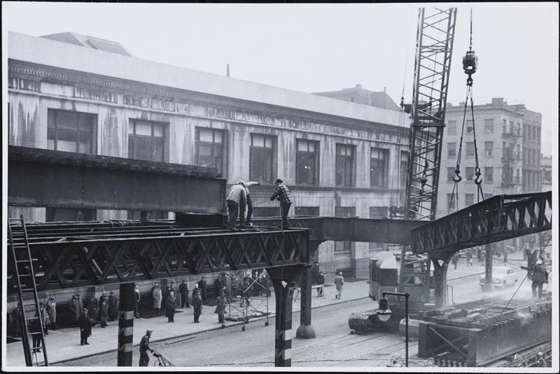 [Cutting through trusses of the Third Avenue El near Cooper Square.]