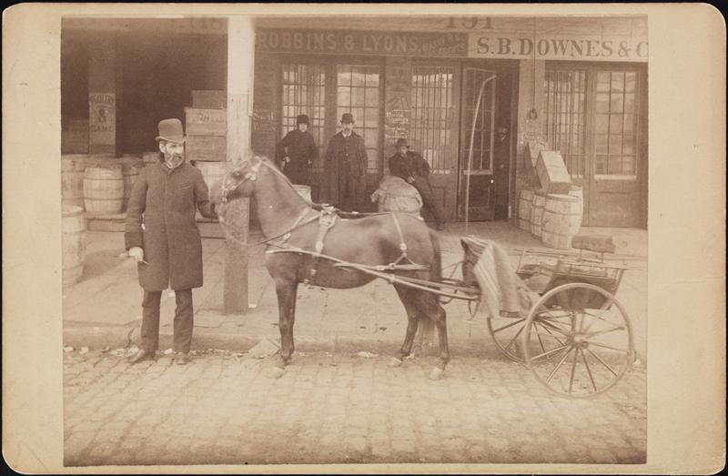 Franklin Street and Greenwich Street. B. Fischer and Co. Factory, delivery wagons.
