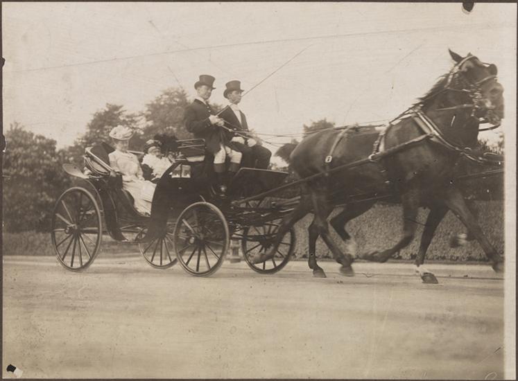 [Mrs. August Belmont with her son, August Jr. in a carriage by their home "By-The-Sea" in Newport.]