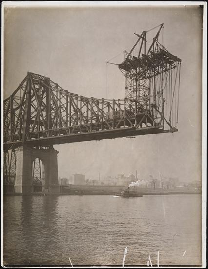 [Queensboro Bridge under construction.]