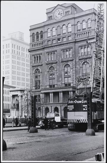 [Cutting through trusses of the Third Avenue El, north of 6th Street.]