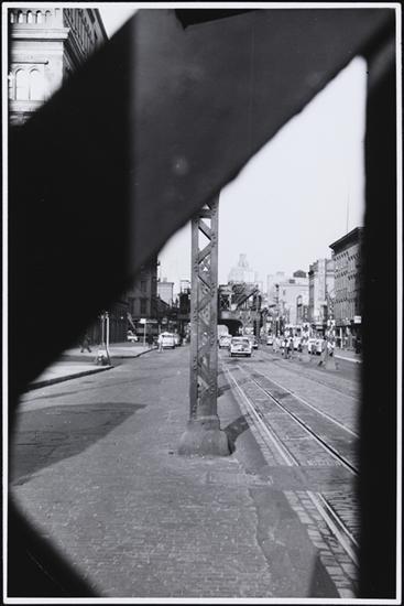 [Cutting through trusses of the Third Avenue El, north of 6th Street.]