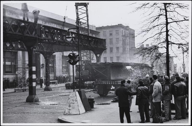 [Cutting through trusses of the Third Avenue El between 6th and 7th Streets.]