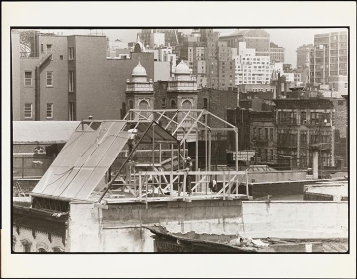 [Windmill and solar collectors on top of 519 East 11th Street.]