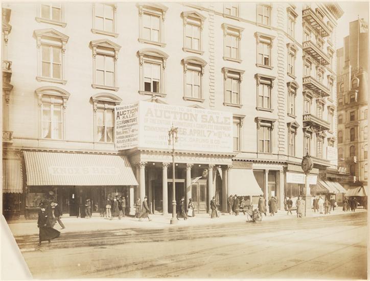 [Fifth Avenue Hotel with sign announcing auction sale.]