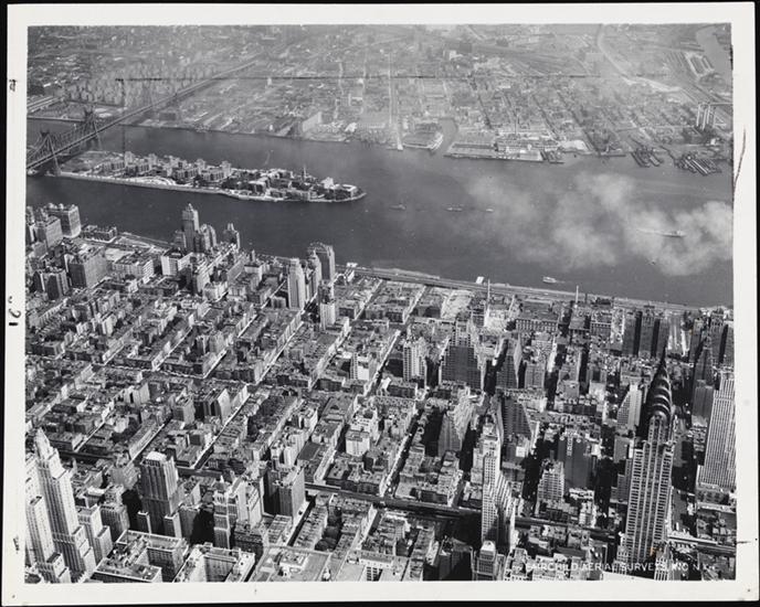 890-870 United Nations Plaza. United Nations Plaza Apartments, Aerial View, Corner of U.N. Assembly At Left, Apartments At Right Vertical