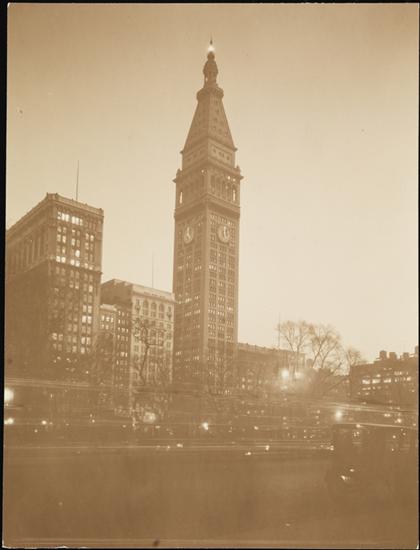[Looking at the north building and clock tower of the Metropolitan Life Insurance Company from Madison Square Park.]