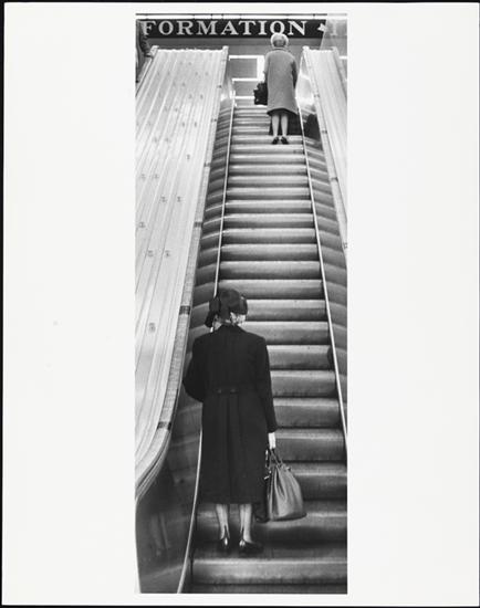 [Commuters on escalators at Port Authority Bus Terminal.]