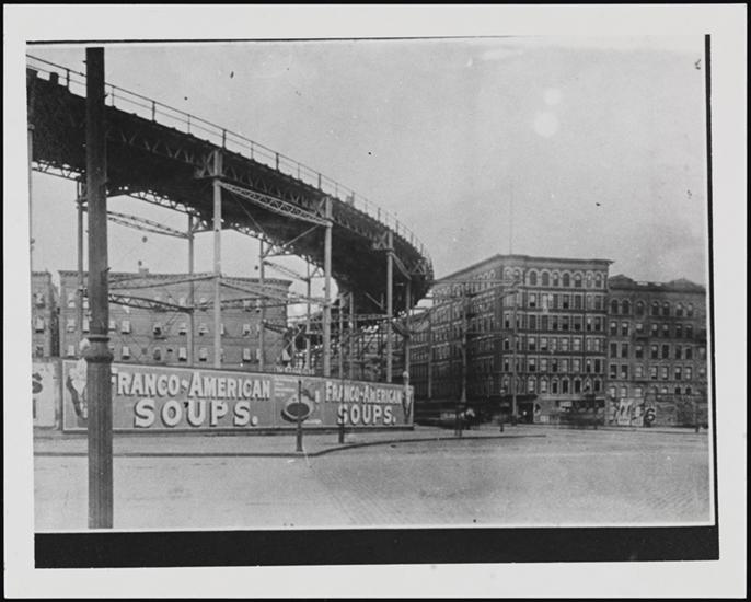 [Elevated train tracks at 149th Street and 8th Avenue.]