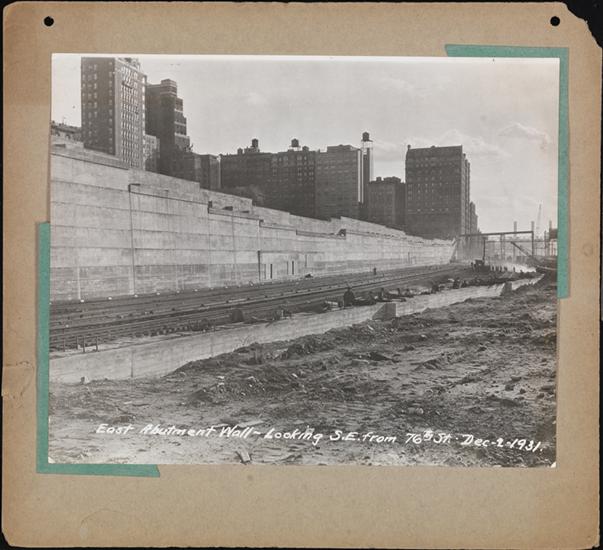 East Abutment Wall- Looking north from 72nd Street. [Train tracks on 72nd Street.]