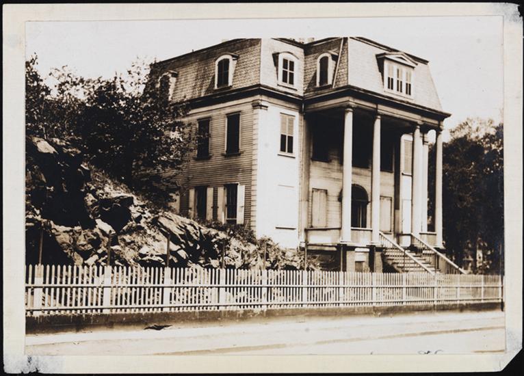 [Watt-Pinkney Mansion's yard surrounded by apartment buildings.]