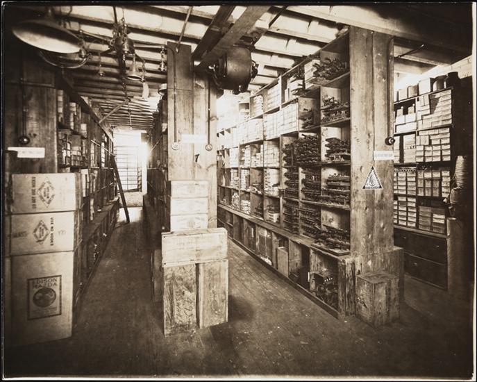 [Store room at Lord Electric Company, 333 West 49th Street.]