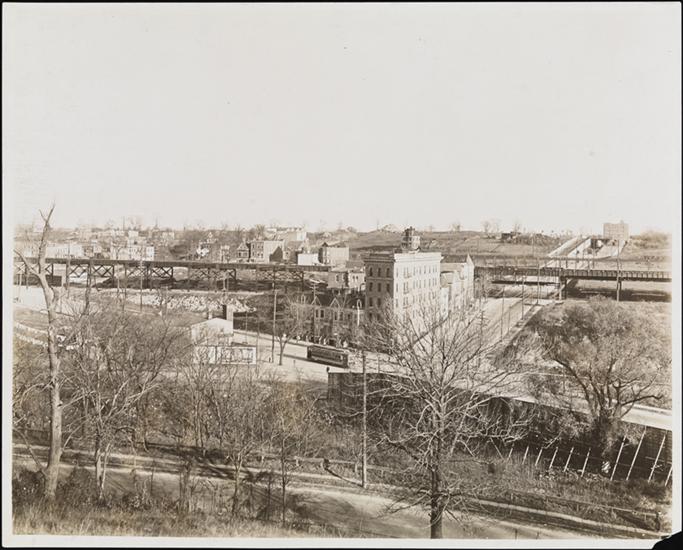 [Boscobel Avenue showing Huber property on right and new subway station on left.]