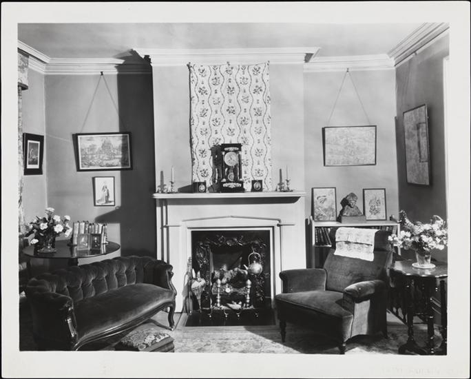 Robert A. Lovett [residence], 625 East 83rd Street, NYC. Living room general view to fireplace.