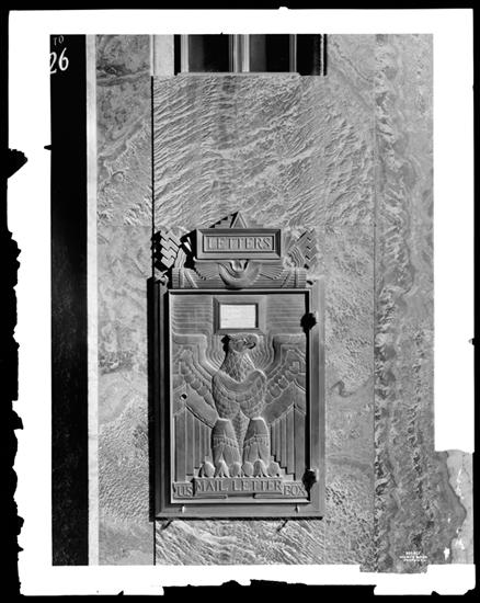 Beaver and Broadway. Standard Oil Building, mailbox in Hall.