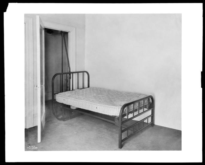 [Residence. Interior, bedroom. (Bed in closet).]