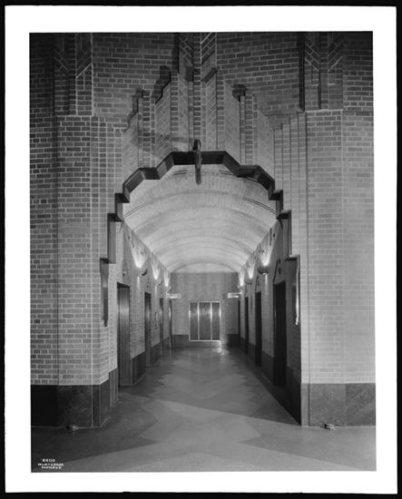 Broadway and Dey Street. New York Telephone and Telegraph Building. Elevator corridor.