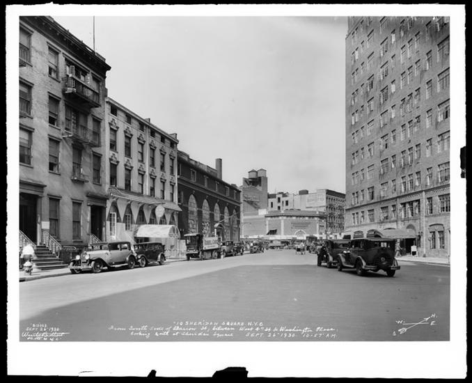 3-4-5-6 Sheridan Square or 4th Street. Row of houses.