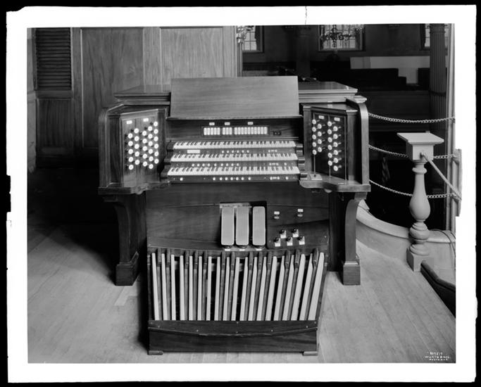 Vesey Street and Broadway. St. Paul's Chapel, new organ console with Herbert Ralph Ward, organist, at same.