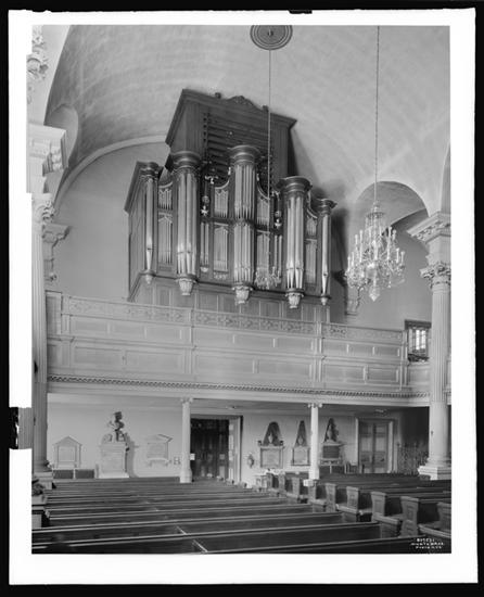 Vesey Street and Broadway. St. Paul's Chapel, new organ console and part of gallery.