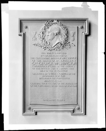 Vesey Street and Broadway. St. Paul's Chapel, memorial tablet, George Washington Centenary of Inauguration.