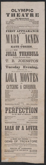 Opening night of the fall season. Monday evening, August 24, 1857, will be presented the popular farce of "Lola Montes; or, Catching a Governor"