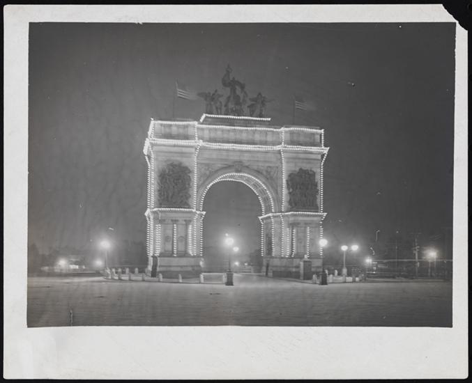 [Grand Army Plaza at night.]