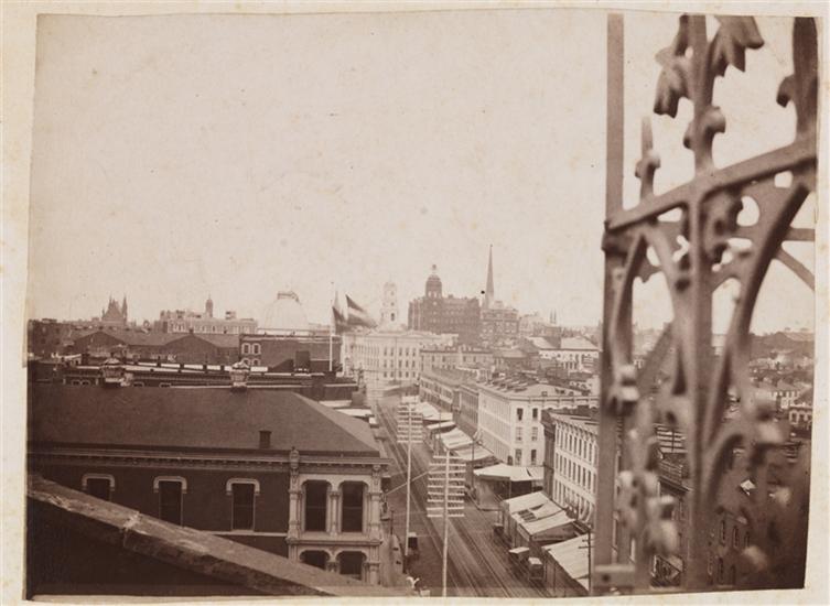 [From the Brooklyn Bridge, looking up Fulton Street.]