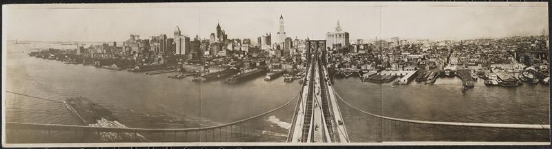 [View of Manhattan skyline from Brooklyn Bridge.]