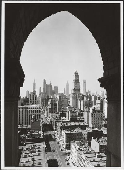 New York City views. View through loggia arch of Barbizon Hotel, 1.
