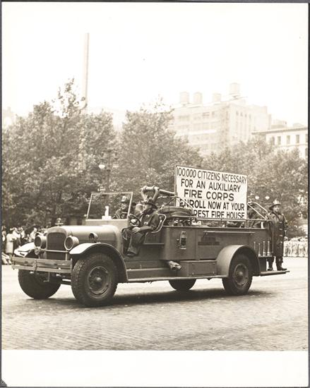 [Recruiting for the Auxiliary Fire Corps during a parade.]