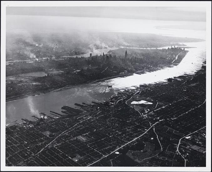 [Aerial view of the North River.]
