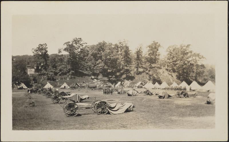 [Soldiers at the mess tent in Van Cortlandt Park.]