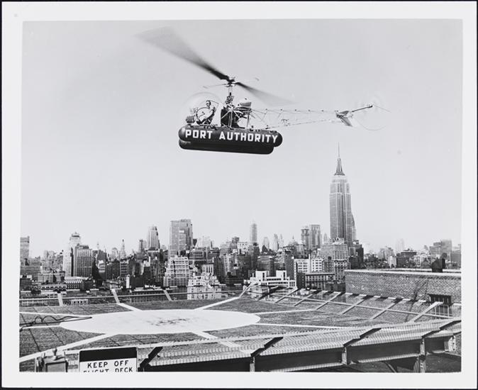 [Port Authority Building with helicopter landing on heliport.]