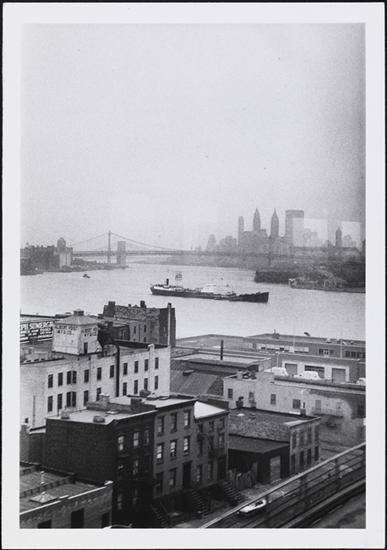 [Lower Manhattan with the Brooklyn and Manhattan Bridges.]