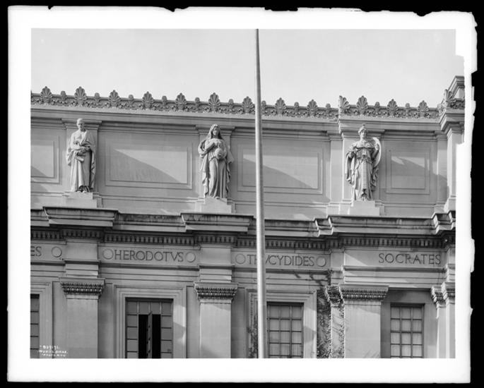Eastern Parkway. Brooklyn Institute [of] Arts and Sciences, view of statuary on top.