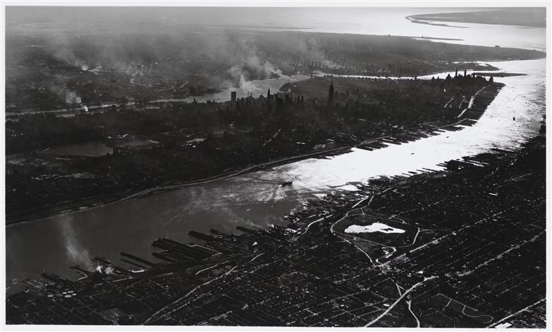 [Aerial view of Brooklyn Piers and Manhattan.]