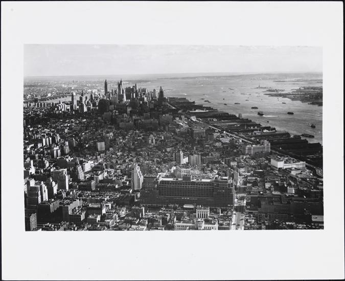 [Aerial view of Brooklyn Piers and Manhattan.]