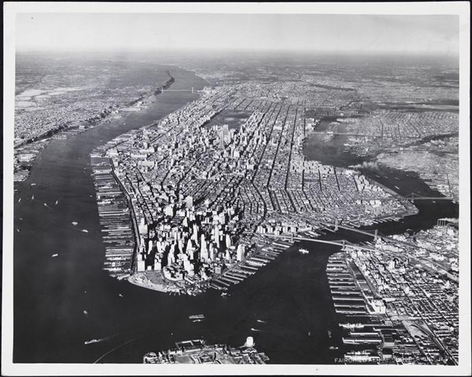 [Aerial view of Manhattan, with the location of Idlewild Airport marked.]